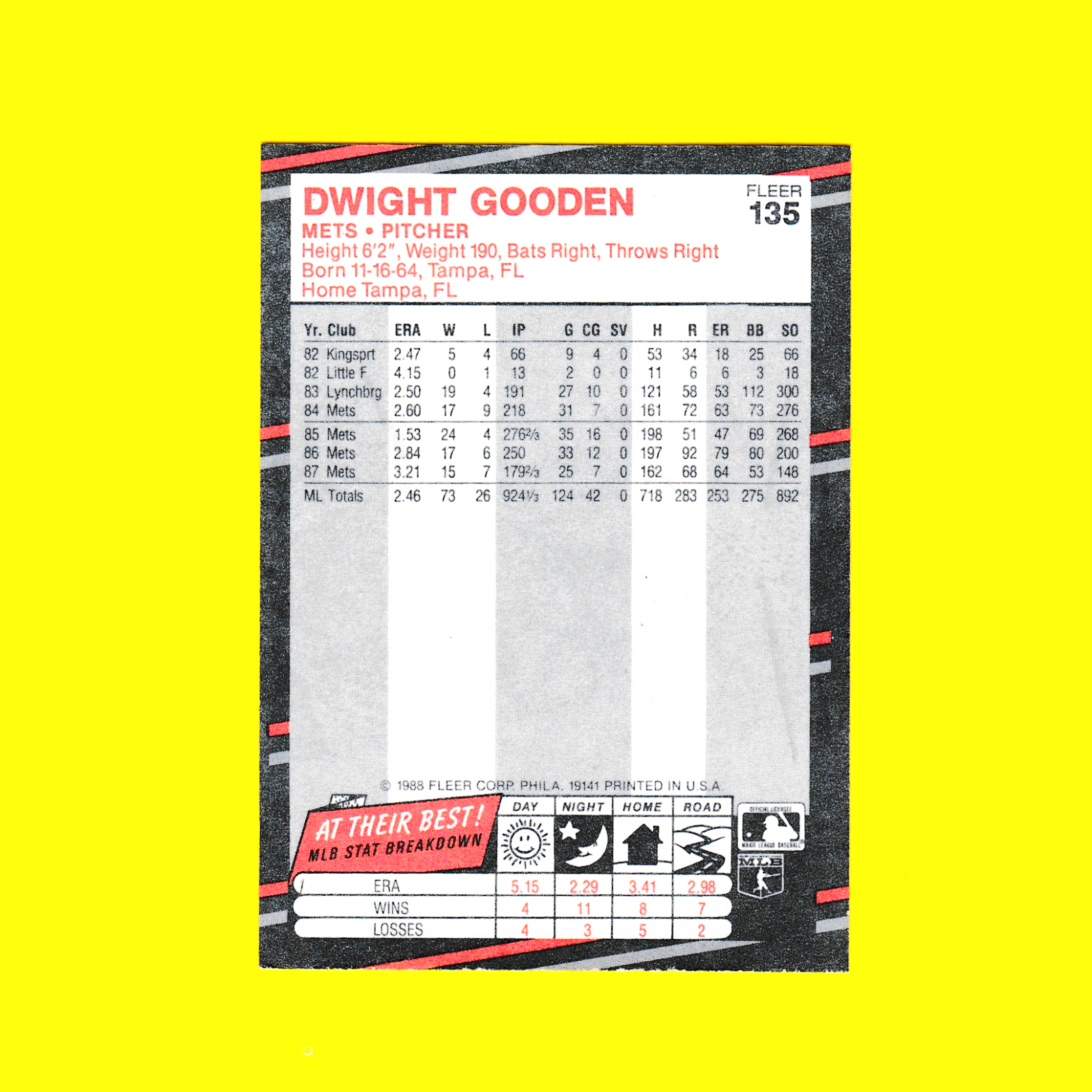 1988 Fleer 135 Dwight Gooden – New York Mets