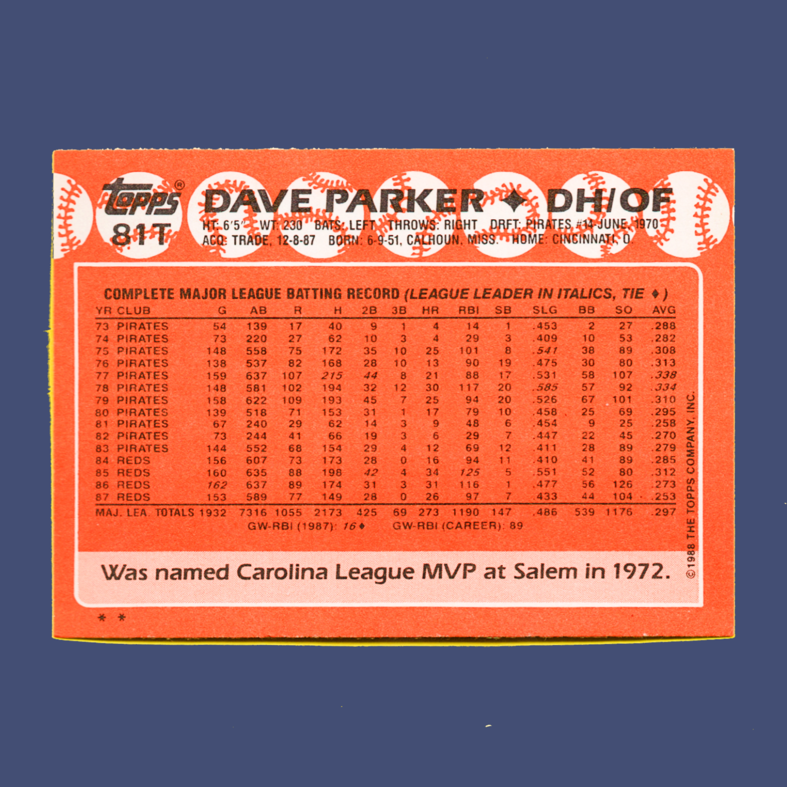 1989 Topps Traded #81T – Dave Parker – Oakland A’s