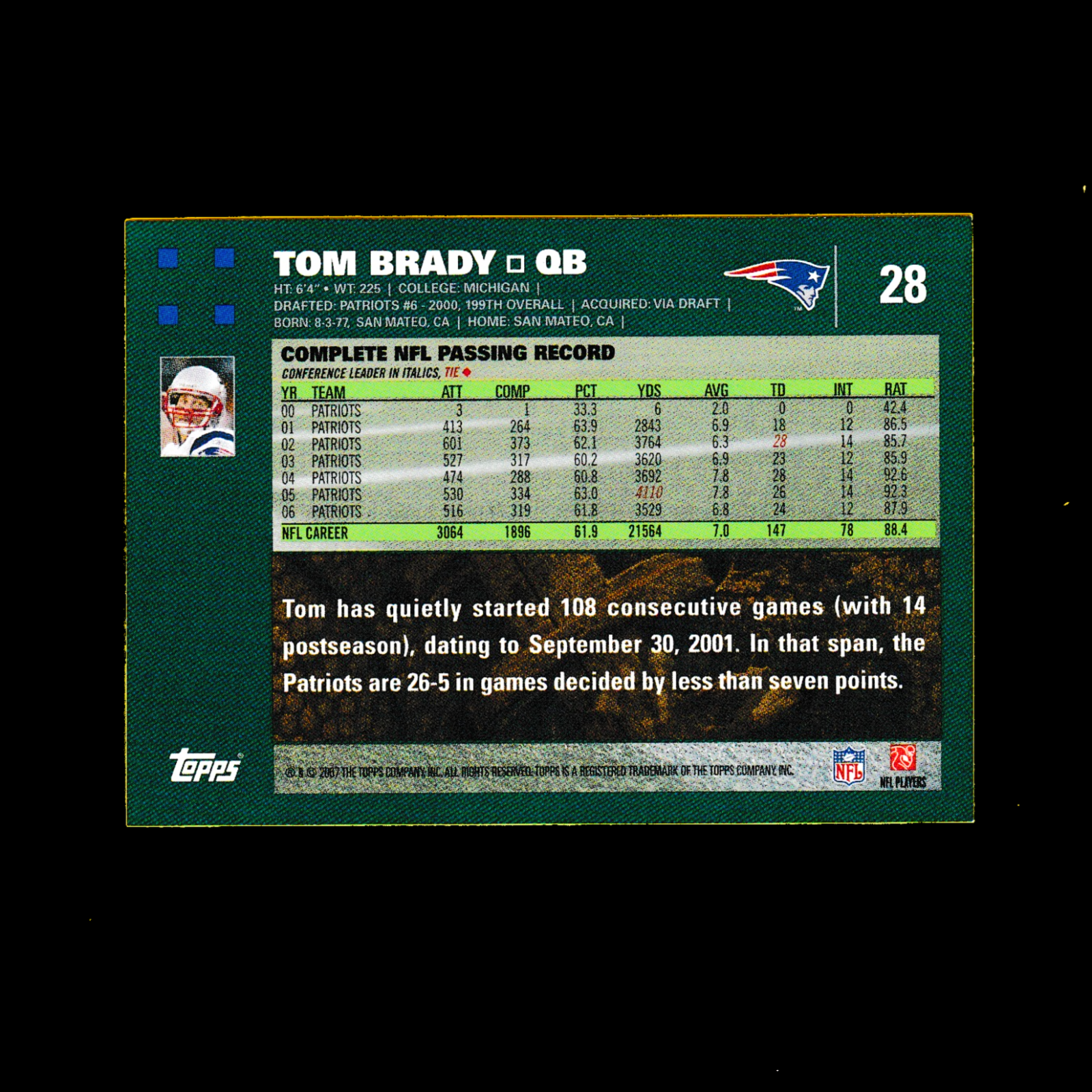 2006 Topps 28 Tom Brady – New England Patriots