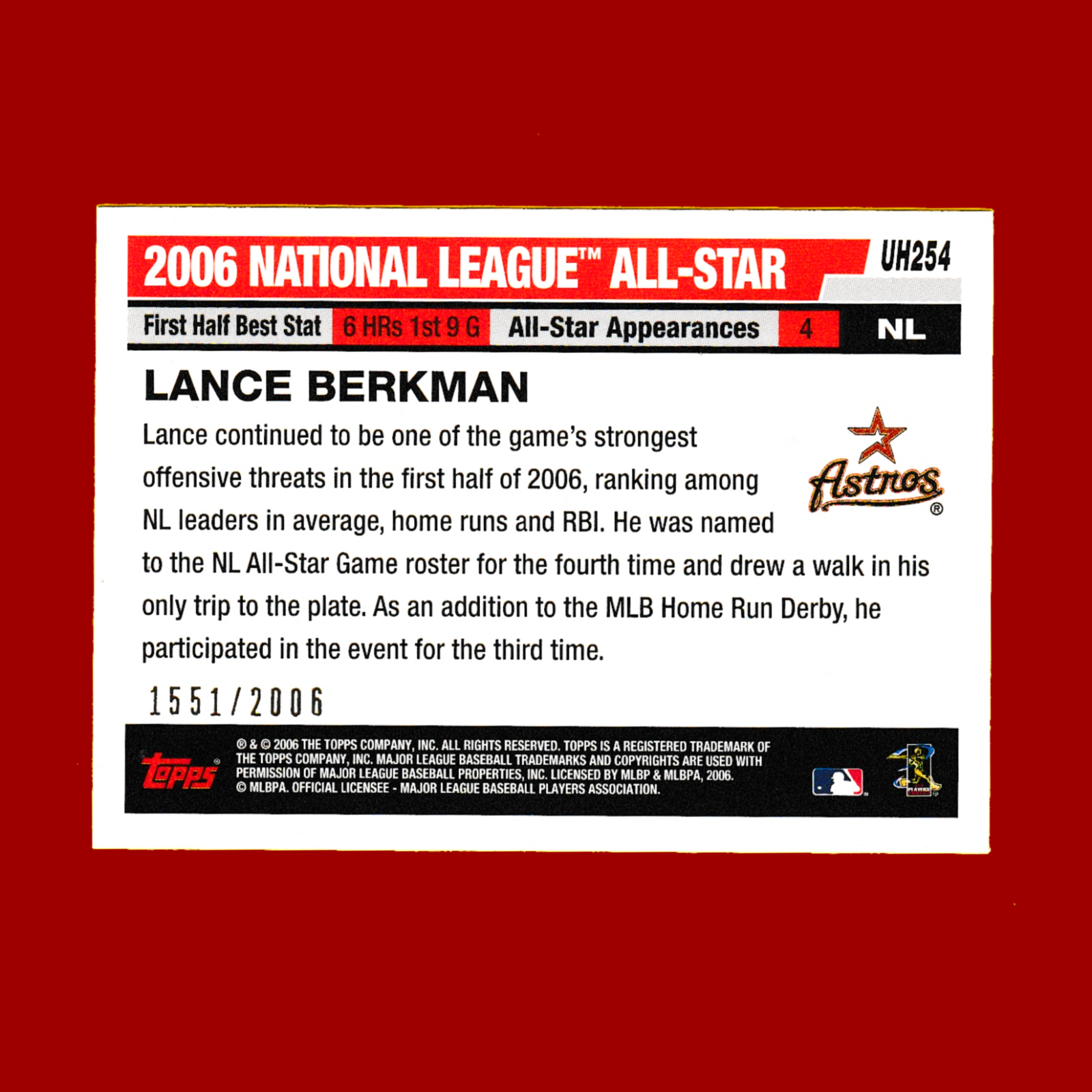 2006 Topps #UH254 Lance Berkman – Gold Parallel (#1551/2006) – Houston Astros