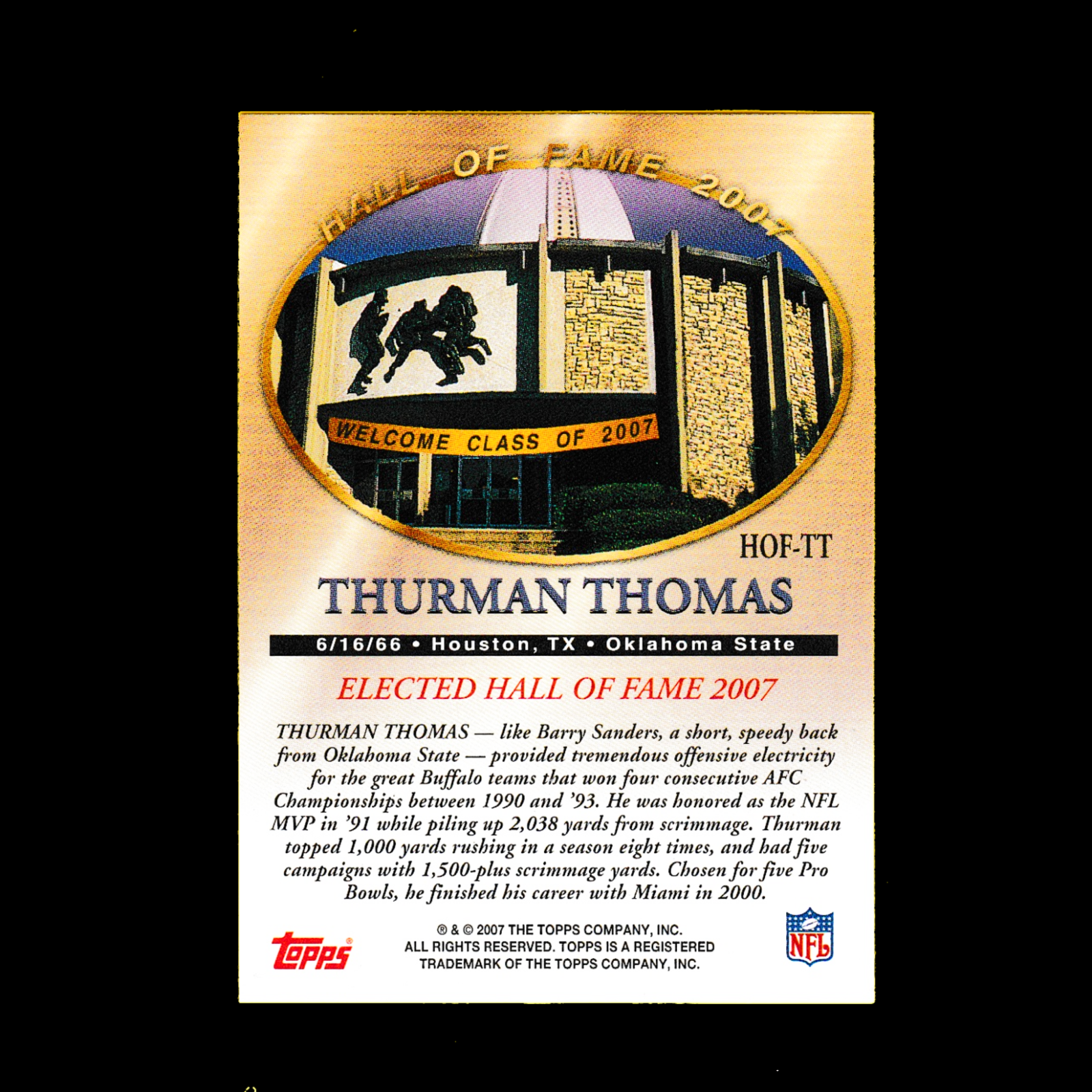2007 Topps HOF11 Thurman Thomas – Hall of Fame – Buffalo Bills