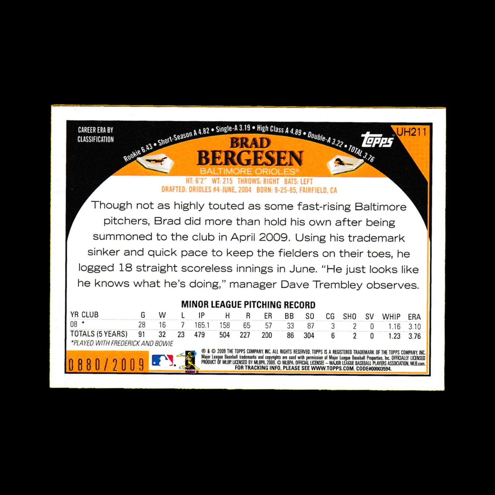 2009 Topps Update #UH211 Brad Bergesen – Gold Parallel (#880/2009) – Orioles