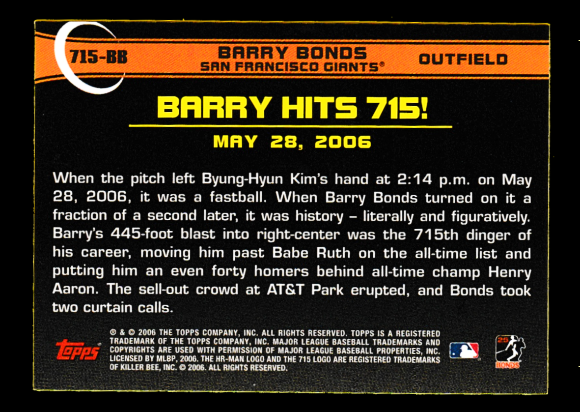 Barry Bonds 2006 Topps Home Run History #715 HR Record Breaker – S.F. Giants