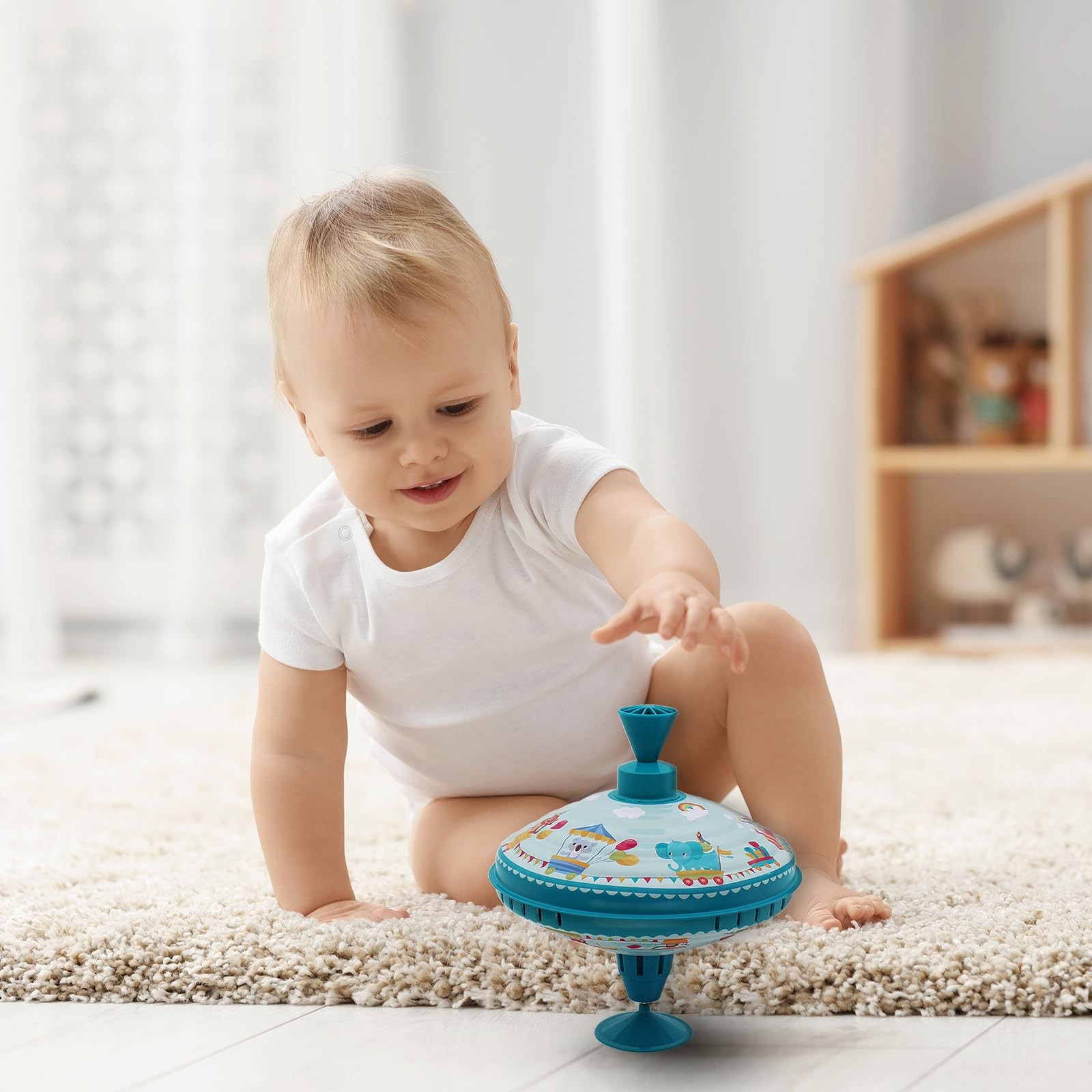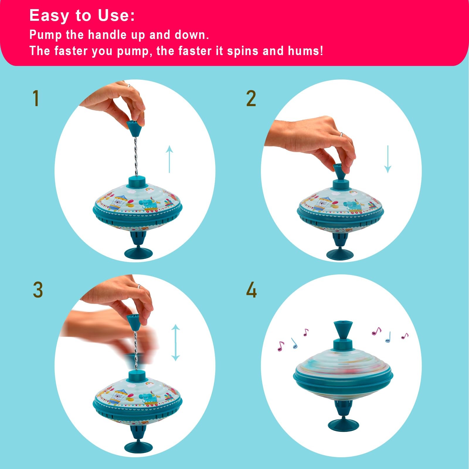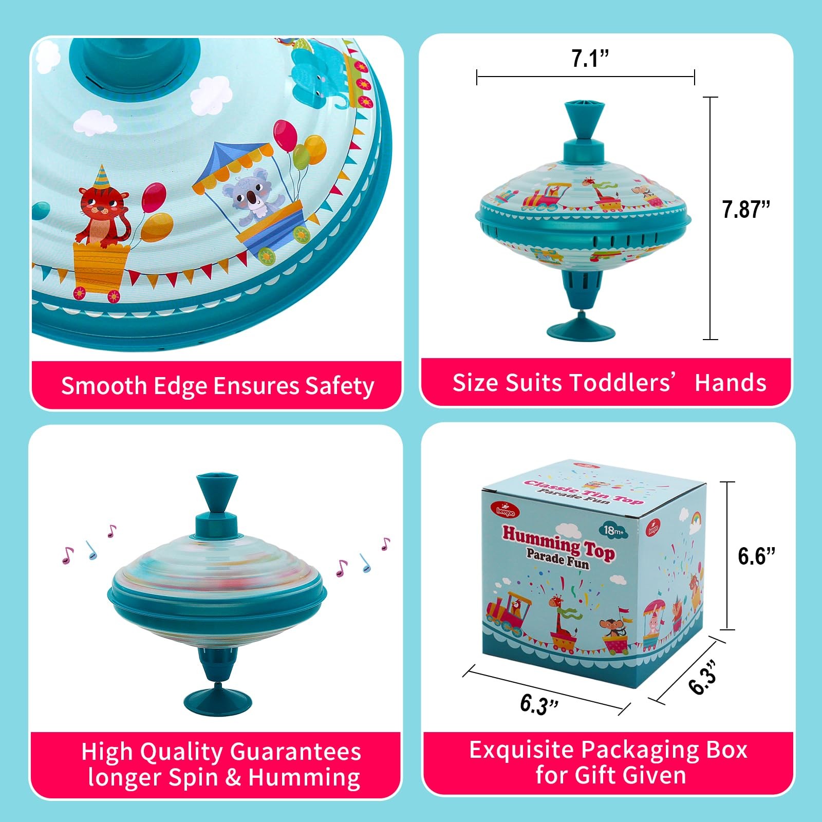 Humming Tin Spinning Top for Toddlers 18+ Months – 7.9” Retro Toy