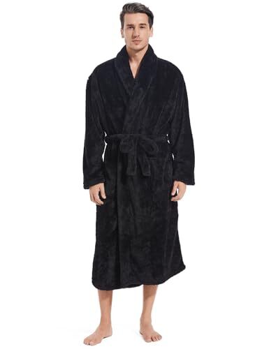 Men’s Soft Flannel Fleece Robe – Inner Wish Long Lounge Bathrobe with Pockets