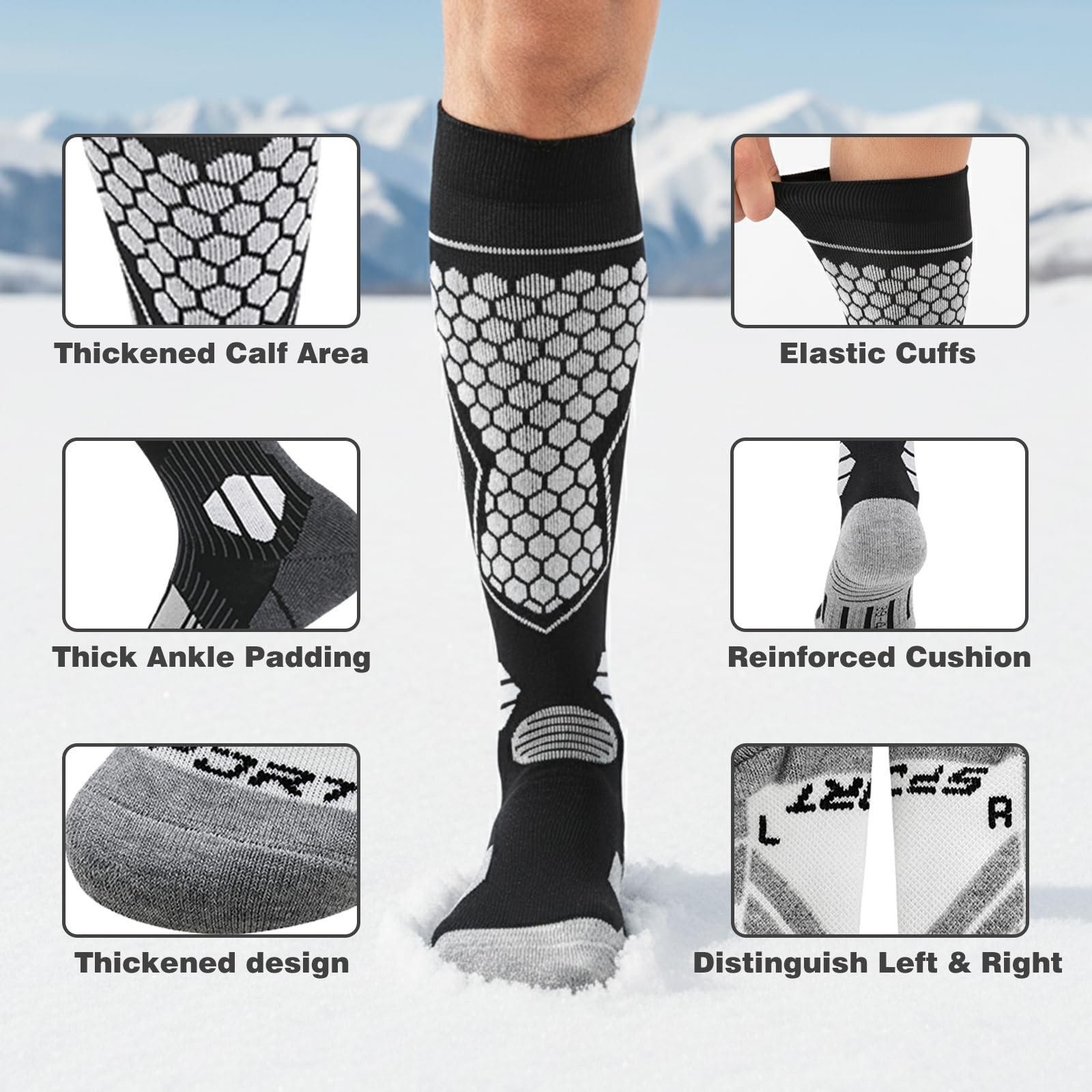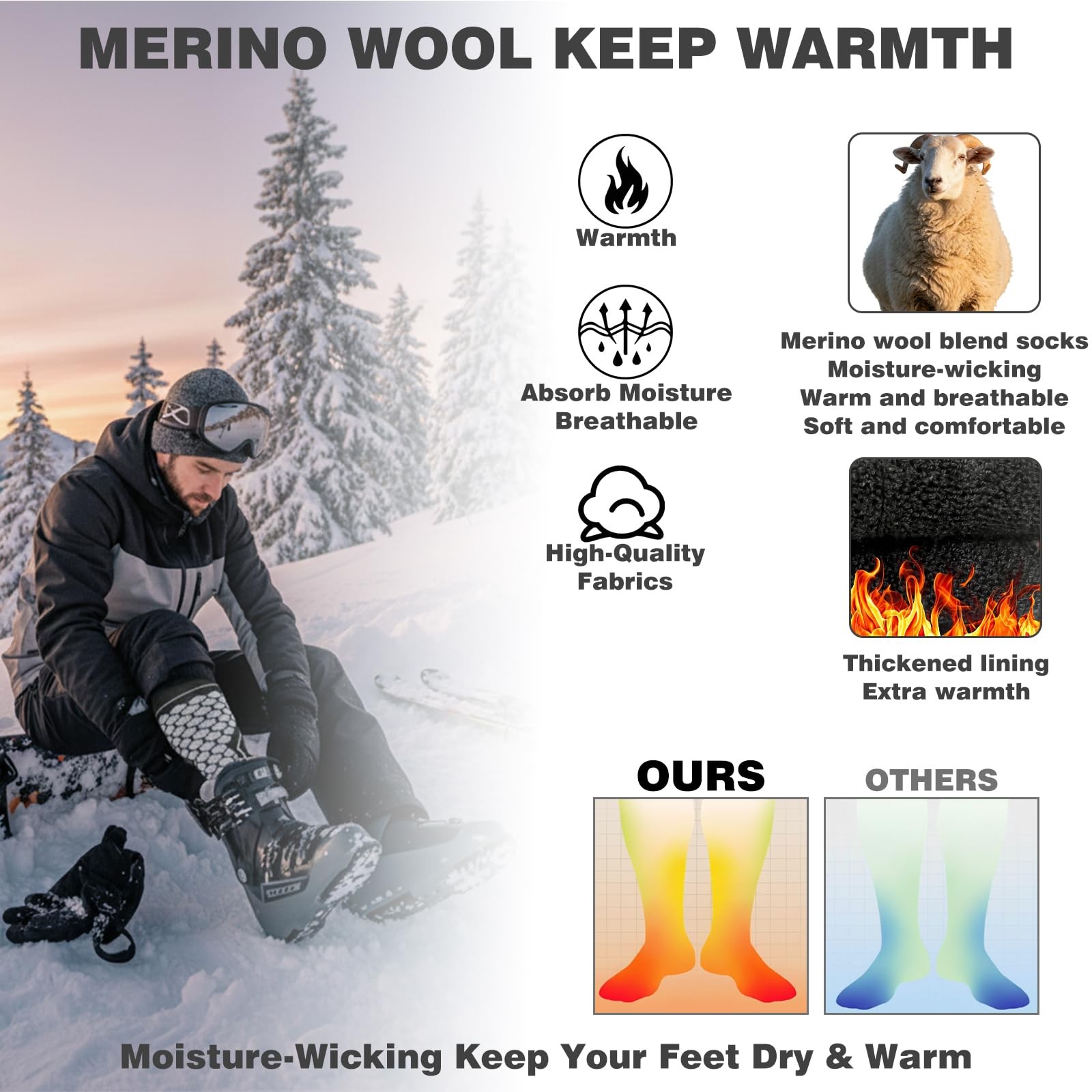 Merino Wool Ski Socks: Warm, Moisture-Wicking for Winter Sports, 3 Pairs